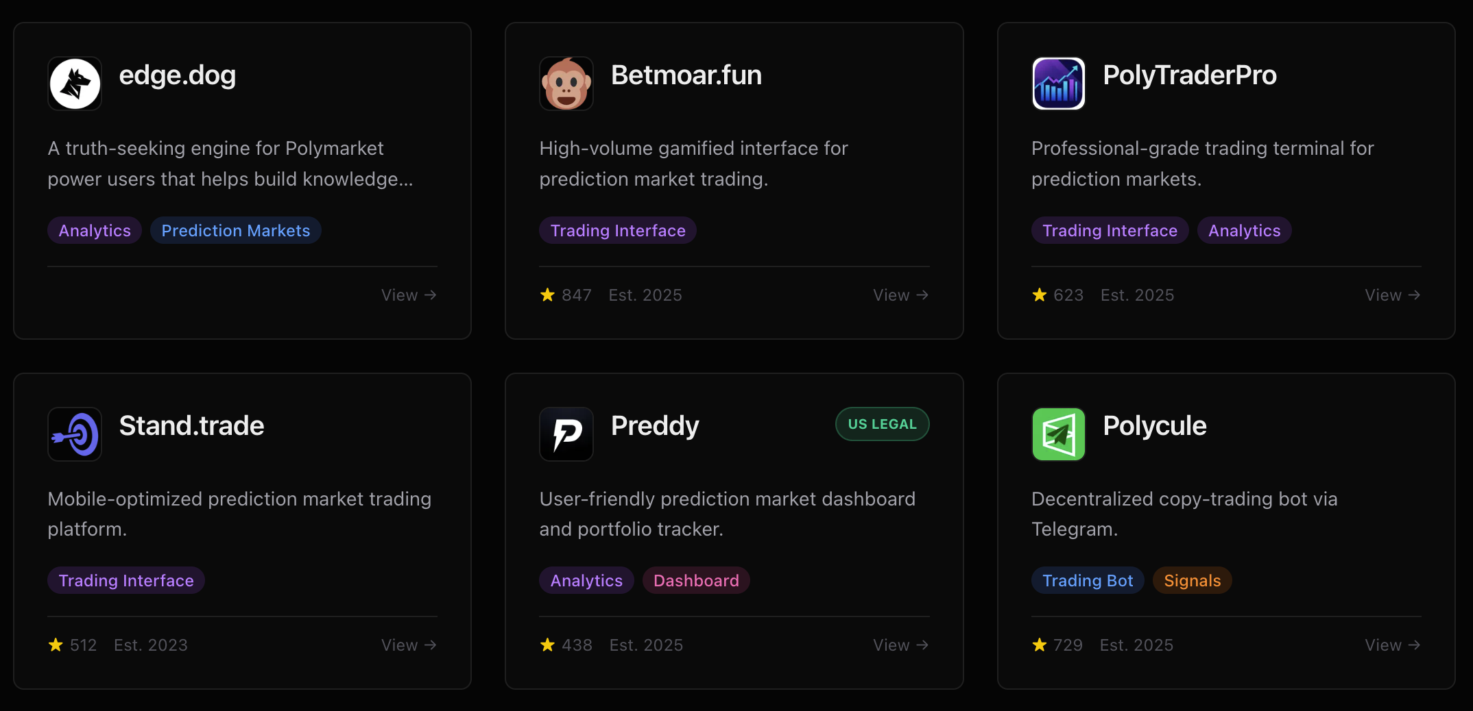 PredictionMarket.tools is the independent ecosystem directory for prediction markets. It helps traders, developers, and researchers discover, compare, and understand prediction market platforms and tools. The site features 96+ tool listings, 60+ educational guides, live market data, and side-by-side platform comparisons.